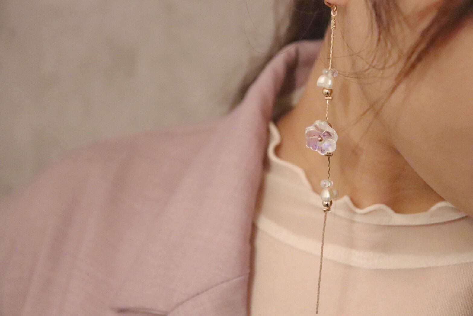 小さな1輪の花を纏ったアクセサリー